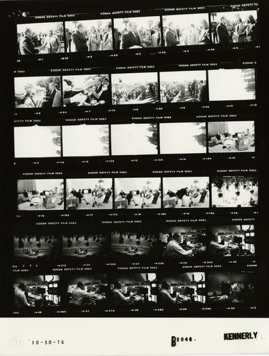 | Keywords: Ford B2046 NLGRF photo contact sheet (1976-10-30)(Gerald Ford Library).jpg White House Photographic Office WHPO is housed at the Gerald R Ford Presidential Library a branch of the National Archives and Records Administration NARA <br/><br/> This file is a 200 dpi photo contact sheet having images from roll of film B2046 of the August 9 1974 - January 20 1977 Gerald R Ford White House Photographic Office Series A0001-A9999 and B0001-B2886 photographs <br/><br/> The date on the photo contact sheet is the date the roll of film was processed not necessarily the date the photographs were taken See table below for additional details 1976-10-30 Gerald R Ford Presidential Library Image http //www fordlibrarymuseum gov/library/whphotos/B2046_NLGRF jpg B2046_NLGRF jpg from http //www fordlibrarymuseum gov/library/whphotos/19761030whpo pdf White House Photographs October 30 1976 of the http //www fordlibrarymuseum gov/Library/whphotos/whpo asp White House Photographic Collection page White House Photographic Office WHPO <br/> Creator David Hume Kennerly PD-USGov Institution Institution Gerald R Ford Presidential Library Table wikitable sortable + Photo contact sheet B2046 U S President Ford Administration Gerald R Ford Library Frame s Tone Subject proper Subject generic Names Geographic Location Photographer Date - 1-7 BW Campaign Trip to Texas - Prior to Rally Outside Houston Music Theater greeting handshaking; some people hilding umbrellas GRF Crowd Chewerleaders Others Houston TX Houston Music Theater - Outside Kennerly 1976-10-30 - 8-9 BW Campaign Trip to Texas - Rally Outside Houston Music Theater GRF at lectern waving; crowd on left; platform guests on right stsnding applauding GRF Platform Guests Crowd Houston TX Houston Music Theater - Outside Kennerly 1976-10-30 - 12-14 BW Campaign Trip to Texas - Rally Outside Houston Music Theater GRF on lectern waving both hands in air in last 2 frames; taken from lower vantage point GRF John Connally Platform Guests Houston TX Houston Music Theater - Outside Kennerly 1976-10-30 - 15-19 BW Campaign Trip to Texas - Prior to Television Interview on KTRK seated talking; various angles and distances GRF J Connally J Garagiola Edith Green Others Houston TX KTRK-TV -Green Room Kennerly 1976-10-30 - 20-23 BW Campaign Trip to Texas - Television Interview on KTRK seated in semi-circle under lights; long shots from higher vantage point GRF J Connally J Garagiola Edith Green Interview Houston TX KTRK-TV -Studio Kennerly 1976-10-30 - 24-29 BW Campaign Trip to Texas - Television Interview on KTRK looking at monitors; backs to camera Technicians Houston TX Control Room - KTRK-TV Kennerly 1976-10-30 - 30 BW Campaign Trip to Texas - Following Television Interview on KTRK greeting handshaking; all may not be in frame GRF Technicians Houston TX Control Room - KTRK-TV Kennerly 1976-10-30 Gerald R Ford Presidential Library and Museum-cooperation PD-USGov Contact sheets by the Ford White House October 1976 Photographs by David Hume Kennerly from 1976 |