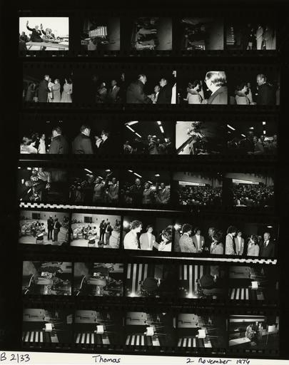 | Keywords: Ford B2133 NLGRF photo contact sheet (1976-11-01)(Gerald Ford Library).jpg White House Photographic Office WHPO is housed at the Gerald R Ford Presidential Library a branch of the National Archives and Records Administration NARA <br/><br/> This file is a 200 dpi photo contact sheet having images from roll of film B2133 of the August 9 1974 - January 20 1977 Gerald R Ford White House Photographic Office Series A0001-A9999 and B0001-B2886 photographs <br/><br/> The date on the photo contact sheet is the date the roll of film was processed not necessarily the date the photographs were taken See table below for additional details 1976-11-01 Gerald R Ford Presidential Library Image http //www fordlibrarymuseum gov/library/whphotos/B2133_NLGRF jpg B2133_NLGRF jpg from http //www fordlibrarymuseum gov/library/whphotos/19761101whpo pdf White House Photographs November 1 1976 of the http //www fordlibrarymuseum gov/Library/whphotos/whpo asp White House Photographic Collection page White House Photographic Office WHPO - Thomas PD-USGov Institution Institution Gerald R Ford Presidential Library Table wikitable sortable + Photo contact sheet B2133 U S President Ford Administration Gerald R Ford Library Frame s Tone Subject proper Subject generic Names Geographic Location Photographer Date - 3 Color Campaign Trip to Michigan - Following Campaign Rally at Wonderland Mall standing in open limousine waving; Ford Plant in background GRF Betty Ford Rep Esch Carl Pursell Livonia MI Wonderland Mall Thomas 1976-11-01 - 4 Color Campaign Trip to Michigan - Arrival in Grand Rapids waving at top of steps of Air Force One; night shot GRF Betty Ford Grand Rapids MI Kent County Airport Thomas 1976-11-01 - 5-7 Color Campaign Trip to Michigan - Arrival in Grand Rapids - President's half-brothers greeting handshaking at base of steps from Air Force One; various distances; all not in every frame GRF Betty Ford; Tom Dick Jim Ford Spouses; Others Grand Rapids MI Kent County Airport Thomas 1976-11-01 - 8-14 Color Campaign Trip to Michigan - Arrival in Grand Rapids greeting handshaking at base of steps from Air Force One; various angles and distances; all not in every frame GRF Betty Ford Others Grand Rapids MI Kent County Airport Thomas 1976-11-01 - 15-20 Color Campaign Trip to Michigan - Rally in Front of the Pantlind Hotel at lectern; GRF and BF embracing waving; others in background GRF Betty Ford Sen Griffin Gov Milliken Others Grand Rapids MI Pantlind Hotel -Outside Thomas 1976-11-01 - 21-22 Color Campaign Trip to Michigan - Rally at Grand Rapids Junior College standing on stage GRF giving two-hnaded waves; others applauding; crwod in foreground; taken from higher vantage from back of room Betty Ford; Philip Runkel Vernis Schad Rev Abney Rev Littlefair Lumen Winter Gerald Elliott Grand Rapids Board of Education Members; Crowd Grand Rapids MI Grand Rapids Junior College - Gerald R Ford Health Physical Education Center Thomas 1976-11-01 - 23-24 Color Campaign Trip to Michigan - following Rally at Grand Rapids Junior College Nessen and man standing talking; others seated in folding chairs; room mostly empty Nessen Unidentified Man Others Grand Rapids MI Grand Rapids Junior College - Gerald R Ford Health Physical Education Center Thomas 1976-11-01 - 25-27 Color Campaign Trip to Michigan - following Rally at Grand Rapids Junior College greeting handshaking talking; GRF not is 1st frame GRF Betty Ford Unidentified Students Grand Rapids MI Grand Rapids Junior College - Gerald R Ford Health Physical Education Center Thomas 1976-11-01 - 28-31 Color Campaign Trip to Michigan - Prior to Voting in Presidential Election GRF and BF signing in getting voting instructions; all not in every frame GRF Betty Ford Election Workers East Grand Rapids MI Wealthy Elementary School - Auditorium Thomas 1976-11-01 - 32-36 Color Campaign Trip to Michigan - Voting in Presidential Election standing behind voting machines; taken from right of GRF GRF Betty Ford East Grand Rapids MI Wealthy Elementary School - Auditorium Thomas 1976-11-01 - 37 Color Campaign Trip to Michigan - Following Voting in Presidential Election standing talking man holding small paper maybe I voted stickers GRF Betty Ford Election Worker East Grand Rapids MI Wealthy Elementary School - Auditorium Thomas 1976-11-01 Gerald R Ford Presidential Library and Museum-cooperation PD-USGov Contact sheets by the Ford White House November 1976 |