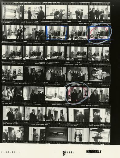 Keywords: Ford B2195 NLGRF photo contact sheet (1976-11-03)(Gerald Ford Library).jpg White House Photographic Office WHPO is housed at the Gerald R Ford Presidential Library a branch of the National Archives and Records Administration NARA <br/><br/> This file is a 200 dpi photo contact sheet having images from roll of film B2195 of the August 9 1974 - January 20 1977 Gerald R Ford White House Photographic Office Series A0001-A9999 and B0001-B2886 photographs <br/><br/> The date on the photo contact sheet is the date the roll of film was processed not necessarily the date the photographs were taken See table below for additional details 1976-11-03 Gerald R Ford Presidential Library Image http //www fordlibrarymuseum gov/library/whphotos/B2195_NLGRF jpg B2195_NLGRF jpg from http //www fordlibrarymuseum gov/library/whphotos/19761103whpo pdf White House Photographs November 3 1976 of the http //www fordlibrarymuseum gov/Library/whphotos/whpo asp White House Photographic Collection page White House Photographic Office WHPO <br/> Creator David Hume Kennerly PD-USGov Institution Institution Gerald R Ford Presidential Library Table wikitable sortable + Photo contact sheet B2195 U S President Ford Administration Gerald R Ford Library Frame s Tone Subject proper Subject generic Names Geographic Location Photographer Date - 1 BW Prior to Making Congratulatory Telephone Call to Jimmy Carter seated at desk reading documents GRF Oval Office Kennerly 1976-11-03 - 2 BW Prior to Ford Family Meeting Media on Morning After General Election standing talking Betty Ford Cheney Oval Office Kennerly 1976-11-03 - 3-4 BW Prior to Ford Family Meeting Media on Morning After General Election kissing embracing GRF Betty Ford Oval Office Kennerly 1976-11-03 - 5 BW Prior to Ford Family Meeting Media on Morning After General Election standing talking; Nessen holding large folder of documents reading from file card GRF Betty Ford Ceney Nessen Oval Office Kennerly 1976-11-03 - 6 BW Prior to Ford Family Meeting Media on Morning After General Election Mike in foreground; Susan and Gayle backs to camera looking at photographs and objects on credenza behind desk Susan Ford Mike Gayle Ford Oval Office Kennerly 1976-11-03 - 7 BW Prior to Ford Family Meeting Media on Morning After General Election standing in group near desk; all not in frame GRF Betty Ford Mike Ford Gayle Ford Steve Ford Susan Ford Jack Ford; Cheney Nessen Oval Office Kennerly 1976-11-03 - 8-9 BW Prior to Ford Family Meeting Media on Morning After General Election moving into positions behind desk for family portrait GRF Betty Ford Mike Ford Gayle Ford Steve Ford Susan Ford Jack Ford Oval Office Kennerly 1976-11-03 - 10 BW Prior to Ford Family Meeting Media on Morning After General Election standing behind desk; BF putting hand under Jack's chin GRF Betty Ford Mike Ford Gayle Ford Steve Ford Susan Ford Jack Ford Oval Office Kennerly 1976-11-03 - 11-13 BW Prior to Ford Family Meeting Media on Morning After General Election standing posing behind desk for family portrait GRF Betty Ford Mike Ford Gayle Ford Steve Ford Susan Ford Jack Ford Oval Office Kennerly 1976-11-03 - 14-16 BW Prior to Ford Family Meeting Media on Morning After General Election moving around behind and in front of desk following family portrait; all not in every frame GRF Betty Ford Mike Ford Gayle Ford Steve Ford Susan Ford Jack Ford Oval Office Kennerly 1976-11-03 - 17 BW Prior to Ford Family Meeting Media on Morning After General Election standing talking smiling GRF Betty Ford Scowcroft Others Scheduling and Advance Office Kennerly 1976-11-03 - 18-19 BW Ford Family Meeting Media on Morning After General Election BF at lectern speaking; others on left of frame; BF and GRF' handshaking in 2nd frame GRF Betty Ford Mike Ford Gayle Ford Steve Ford Susan Ford Jack Ford Press Briefing Area Kennerly 1976-11-03 - 20-21 BW Ford Family Meeting Media on Morning After General Election leaning on lectern talking Jack Ford Press Briefing Area Kennerly 1976-11-03 - 22 BW Following Meeting with Media on Morning After General Election walking back toward Oval Office not seen GRF Others White House Hallway Kennerly 1976-11-03 - 23 BW Following Meeting with Media on Morning After General Election walking back to camera around desk to chair; long shot GRF Oval Office Kennerly 1976-11-03 - 24-27 BW Following Meeting with Media on Morning After General Election standing talking; GRF's arm around TO's back in 1st 2 frames; close ups GRF O'Donnell Oval Office Kennerly 1976-11-03 - 28 BW Prior to Returning to Oval Office talking; Jack jumping hands over head Mike and Gayle seated on sofa Jack Ford Mike Gayle Ford Scheduling and Advance Office Kennerly 1976-11-03 - 29-30 BW Prior to Returning to Oval Office BF embracing boys individually in each frame Betty Ford Jack Ford Mike Ford Scheduling and Advance Office Kennerly 1976-11-03 - 31 BW Prior to Returning to Oval Office standing talking Betty Ford Jack Ford Mike Ford Gayle Ford Scheduling and Advance Office Kennerly 1976-11-03 - 32 BW Prior to Returning to Oval Office Steve and Susan embracing on left; others standing to side Susan Ford Steve Ford White House staff Scheduling and Advance Office Kennerly 1976-11-03 - 33 BW walking through doorway into Oval Office; back to camera Betty Ford Scheduling and Advance Office Kennerly 1976-11-03 - 34 BW standing talking in doorway from Scheduling and Advance Office GRF Betty Ford Oval Office Kennerly 1976-11-03 - 35 BW walking toward desk backs to camera; GRF with hand in left pocket leaning over desk GRF Mike Ford Oval Office Kennerly 1976-11-03 Gerald R Ford Presidential Library and Museum-cooperation PD-USGov Contact sheets by the Ford White House November 1976 Photographs by David Hume Kennerly from 1976 |