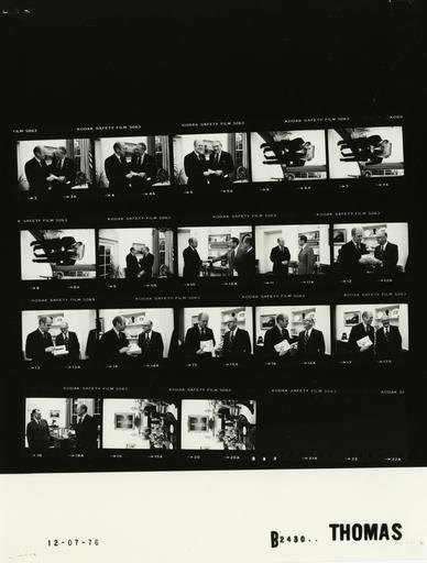 Keywords: Ford B2430 NLGRF photo contact sheet (1976-12-07)(Gerald Ford Library).jpg White House Photographic Office WHPO is housed at the Gerald R Ford Presidential Library a branch of the National Archives and Records Administration NARA <br/><br/> This file is a 200 dpi photo contact sheet having images from roll of film B2430 of the August 9 1974 - January 20 1977 Gerald R Ford White House Photographic Office Series A0001-A9999 and B0001-B2886 photographs <br/><br/> The date on the photo contact sheet is the date the roll of film was processed not necessarily the date the photographs were taken See table below for additional details 1976-12-07 Gerald R Ford Presidential Library Image http //www fordlibrarymuseum gov/library/whphotos/B2430_NLGRF jpg B2430_NLGRF jpg from http //www fordlibrarymuseum gov/library/whphotos/19761207whpo pdf White House Photographs December 7 1976 of the http //www fordlibrarymuseum gov/Library/whphotos/whpo asp White House Photographic Collection page White House Photographic Office WHPO - Thomas PD-USGov Institution Institution Gerald R Ford Presidential Library Table wikitable sortable + Photo contact sheet B2430 U S President Ford Administration Gerald R Ford Library Frame s Tone Subject proper Subject generic Names Geographic Location Photographer Date - 3A-9A BW Chairman Jewish Agency for Israel and Chairman of the Fisher New center Company Detroit MI greeting handshaking standing talking; various angles and distances GRF Max Fisher Oval Office Thomas 1976-12-07 - 10A-11A BW Managing Editor Winchester Evening Star Winchester VA greeting handshaking standing talking GRF Douglass O'Connell Oval Office Thomas 1976-12-07 - 12A-17A BW Son of President Herbert Hoover greeting handshaking standing talking laughing GRF Allan Hoover Oval Office Thomas 1976-12-07 - 18A BW Grandson of President Herbert Hoover standing talking near desk GRF Andrew Hoover Thomas 1976-12-07 - 19A-20A BW Son of President Herbert Hoover seated near fireplace talking smiling GRF Allan Hoover Oval Office Thomas 1976-12-07 Gerald R Ford Presidential Library and Museum-cooperation PD-USGov Contact sheets by the Ford White House December 1976 |
