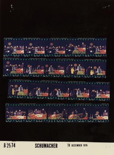 Keywords: Ford B2574 NLGRF photo contact sheet (1976-12-19)(Gerald Ford Library).jpg White House Photographic Office WHPO is housed at the Gerald R Ford Presidential Library a branch of the National Archives and Records Administration NARA <br/><br/> This file is a 200 dpi photo contact sheet having images from roll of film B2574 of the August 9 1974 - January 20 1977 Gerald R Ford White House Photographic Office Series A0001-A9999 and B0001-B2886 photographs <br/><br/> The date on the photo contact sheet is the date the roll of film was processed not necessarily the date the photographs were taken See table below for additional details 1976-12-19 Gerald R Ford Presidential Library Image http //www fordlibrarymuseum gov/library/whphotos/B2574_NLGRF jpg B2574_NLGRF jpg from http //www fordlibrarymuseum gov/library/whphotos/19761219whpo pdf White House Photographs December 19 1976 of the http //www fordlibrarymuseum gov/Library/whphotos/whpo asp White House Photographic Collection page White House Photographic Office WHPO - Schumacher PD-USGov Institution Institution Gerald R Ford Presidential Library Table wikitable sortable + Photo contact sheet B2574 U S President Ford Administration Gerald R Ford Library Frame s Tone Subject proper Subject generic Names Geographic Location Photographer Date - 4A-6A Color Trip to Michigan - Visit to the University of Michigan -Commencement and Presentation Of Honorary Doctor of Laws to Betty Ford standing singing National Anthem; GRF and BF with hands over hearts; academic robes; all not in frames GRF Betty Ford Platform Guests R Fleming D Baker P Brown D Laro R Nederlander S Power T Roach J Waters R Briggs R Brown G Huebner I Murphy E Power L Goodall W Moran H Johnson R Kennedy C Overberger M Radock F Rhodes R Haugh Others Ann Arbor MI University of Michigan -Crisler Arena - Floor Schumacher 1976-12-19 - 7A-9A Color Trip to Michigan -Visit to the University of Michigan -Commencement and Presentation Of Honorary Doctor of Laws to Betty Ford man standing at lectern speaking; others standing in background; academic robes; all not in frames GRF Betty Ford Platform Guests R Fleming D Baker P Brown D Laro R Nederlander S Power T Roach J Waters R Briggs R Brown G Huebner I Murphy E Power L Goodall W Moran H Johnson R Kennedy C Overberger M Radock F Rhodes R Haugh Others Ann Arbor MI University of Michigan -Crisler Arena -Floor Schumacher 1976-12-19 - 10A Color Trip to Michigan -Visit to the University of Michigan -Commencement and Presentation Of Honorary Doctor of Laws to Betty Ford walking toward lectern; academic robes Betty Ford Unidentified Woman Ann Arbor MI University of Michigan -Crisler Arena -Floor Schumacher 1976-12-19 - 11A Color Trip to Michigan - Visit to the University of Michigan -Commencement and Presentation Of Honorary Doctor of Laws to Betty Ford woman at lectern speaking; BF standing to woman's right; academic robes Betty Ford Unidentified Woman Ann Arbor MI University of Michigan -Crisler Arena - Floor Schumacher 1976-12-19 - 12A-15A Color Trip to Michigan - Visit to the University of Michigan -Commencement and Presentation Of Honorary Doctor of Laws to Betty Ford BF standing others putting Doctor of Laws Hood on BF; academic robes Betty Ford Nellie Varner Robert Doerr Ann Arbor MI University of Michigan -Crisler Arena - Floor Schumacher 1976-12-19 - 16A-17A Color Trip to Michigan -Visit to the University of Michigan -Commencement and Presentation Of Honorary Doctor of Laws to Betty Ford BF standing others putting Doctor of Laws Hood on BF; man standing at lectern; academic robes Betty Ford Nellie Varner Robert Doerr Unidentified Man Ann Arbor MI University of Michigan -Crisler Arena -Floor Schumacher 1976-12-19 - 18A Color Trip to Michigan -Visit to the University of Michigan -Commencement and Presentation Of Honorary Doctor of Laws to Betty Ford BF standing wearing Doctor of Laws Hood; others standing; NF handshaking with man at lectern; academic robes Betty Ford Nellie Varner Robert Doerr Unidentified Man Ann Arbor MI University of Michigan -Crisler Arena -Floor Schumacher 1976-12-19 - 19A-20A Color Trip to Michigan -Visit to the University of Michigan -Commencement and Presentation Of Honorary Doctor of Laws to Betty Ford standing at lectern; academic robes Betty Ford Unidentified Man Ann Arbor MI University of Michigan -Crisler Arena -Floor Schumacher 1976-12-19 - 21A-22A Color Trip to Michigan - Visit to the University of Michigan -Commencement and Presentation Of Honorary Doctor of Laws to Betty Ford BF at lectern others seated in background; various angles and distances; all not in frames; academic robes GRF Betty Ford Platform Guests R Fleming D Baker P Brown D Laro R Nederlander S Power T Roach J Waters R Briggs R Brown G Huebner I Murphy E Power L Goodall W Moran H Johnson R Kennedy C Overberger M Radock F Rhodes R Haugh Others Ann Arbor MI University of Michigan -Crisler Arena - Floor Schumacher 1976-12-19 - 23A Color Trip to Michigan -Visit to the University of Michigan -Commencement and Presentation Of Honorary Doctor of Laws to Betty Ford Fleming at lectern speaking; GRF and BF about to kiss in background; academic robes GRF Betty Ford Robben Fleming Ann Arbor MI University of Michigan -Crisler Arena -Floor Schumacher 1976-12-19 Gerald R Ford Presidential Library and Museum-cooperation PD-USGov Contact sheets by the Ford White House December 1976 |