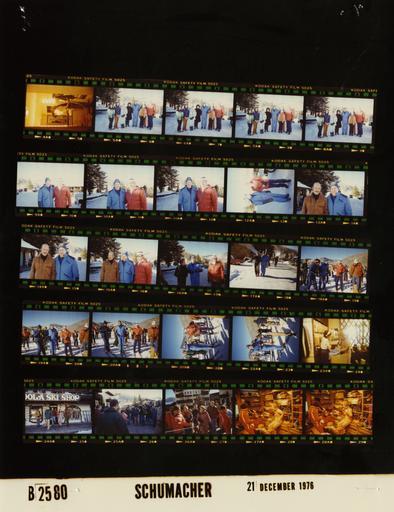 | Keywords: Ford B2580 NLGRF photo contact sheet (1976-12-21)(Gerald Ford Library).jpg White House Photographic Office WHPO is housed at the Gerald R Ford Presidential Library a branch of the National Archives and Records Administration NARA <br/><br/> This file is a 200 dpi photo contact sheet having images from roll of film B2580 of the August 9 1974 - January 20 1977 Gerald R Ford White House Photographic Office Series A0001-A9999 and B0001-B2886 photographs <br/><br/> The date on the photo contact sheet is the date the roll of film was processed not necessarily the date the photographs were taken See table below for additional details 1976-12-21 Gerald R Ford Presidential Library Image http //www fordlibrarymuseum gov/library/whphotos/B2580_NLGRF jpg B2580_NLGRF jpg from http //www fordlibrarymuseum gov/library/whphotos/19761221whpo pdf White House Photographs December 21 1976 of the http //www fordlibrarymuseum gov/Library/whphotos/whpo asp White House Photographic Collection page White House Photographic Office WHPO - Schumacher PD-USGov Institution Institution Gerald R Ford Presidential Library Table wikitable sortable + Photo contact sheet B2580 U S President Ford Administration Gerald R Ford Library Frame s Tone Subject proper Subject generic Names Geographic Location Photographer Date - 4A Color Trip to Colorado - Christmas and Skiing Vacation in Vail CO cleaning suit coat White House Valet Vail CO Presidential Vacation Residence - Richard Bass Residence Schumacher 1976-12-21 - 5A-8A Color Trip to Colorado - Christmas and Skiing Vacation in Vail CO - Head Coach Miami Dolphins Football Team standing posing; all wearing ski jackets or ski attire GRF Don Shula Family Vail CO Presidential Vacation Residence - Richard Bass Residence - Outside Schumacher 1976-12-21 - 9A-12A Color Trip to Colorado - Christmas and Skiing Vacation in Vail CO - Head Coach Miami Dolphins Football Team standing posing; wearing ski jackets or ski attire; various angles GRF Don Shula Vail CO Presidential Vacation Residence - Richard Bass Residence - Outside Schumacher 1976-12-21 - 13A-14A Color Trip to Colorado - Christmas and Skiing Vacation in Vail CO - Football Player Miami Dolphins Football Team standing posing; wearing ski jackets or ski attire GRF Dick Anderson Vail CO Presidential Vacation Residence - Richard Bass Residence - Outside Schumacher 1976-12-21 - 15A Color Trip to Colorado - Christmas and Skiing Vacation in Vail CO - Head Coach Miami Dolphins Football Team; Vice Prsident Rosignol Ski Company standing posing; wearing ski jackets or ski attire GRF Henri Patty Don Shula Vail CO Presidential Vacation Residence - Richard Bass Residence - Outside Schumacher 1976-12-21 - 16A Color Trip to Colorado - Christmas and Skiing Vacation in Vail CO - Vice President Rosignol Ski Company walking talking on snowy trail; carrying skis; wearing ski jackets or ski attire GRF Henri Patty Vail CO Presidential Vacation Residence - Richard Bass Residence - Outside Schumacher 1976-12-21 - 17A-21A Color Trip to Colorado - Christmas and Skiing Vacation in Vail CO - Head Coach and Player Miami Dolphins Football Team; Vice President Rosignol Ski Company standing talking wearing skis; wearing ski jackets or ski attire GRF Henri Patty Don Shula Dick Anderson Vail CO Vail Mountain Schumacher 1976-12-21 - 22A Color Trip to Colorado - Christmas and Skiing Vacation in Vail CO standing talking wearing skis; wearing ski jacket and woolen cap GRF Vail CO Vail Mountain Schumacher 1976-12-21 - 23A Color Trip to Colorado - Christmas and Skiing Vacation in Vail CO BF looking at blouses; wearing ski attire Betty Ford Store Clerk Vail CO Gondola Ski Shop Schumacher 1976-12-21 - 24A Color Trip to Colorado - Christmas and Skiing Vacation in Vail CO walking out of store; BF wearing ski attire Betty Ford Secret Service Others Vail CO Gondola Ski Shop - Outside Schumacher 1976-12-21 - 25A Color Trip to Colorado - Christmas and Skiing Vacation in Vail CO BF walking talking to media; media filming videotaping BF; BF wearing ski attire Betty Ford Secret Service Media Others Vail CO Vail Street Schumacher 1976-12-21 - 26A Color Trip to Colorado - Christmas and Skiing Vacation in Vail CO walking out of store; BF wearing ski attire Betty Ford Secret Service Weidenfeld Others Vail CO Vail Street Schumacher 1976-12-21 - 27A-28A Color Trip to Colorado - Christmas and Skiing Vacation in Vail CO BF looking at sweaters; wearing ski attire Betty Ford Weidenfeld Store Clerk Vail CO Unidentified Ski Shop Schumacher 1976-12-21 Gerald R Ford Presidential Library and Museum-cooperation PD-USGov Contact sheets by the Ford White House December 1976 Ski suit |