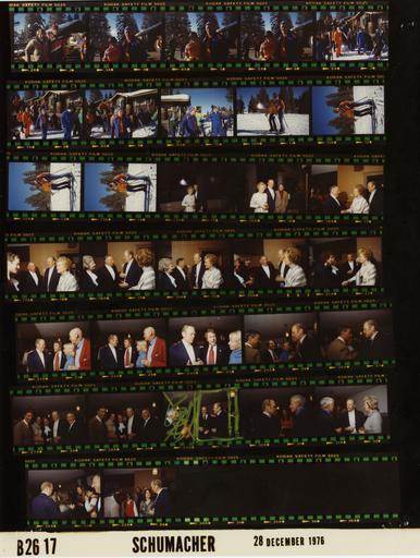 Keywords: Ford B2617 NLGRF photo contact sheet (1976-12-28)(Gerald Ford Library).jpg White House Photographic Office WHPO is housed at the Gerald R Ford Presidential Library a branch of the National Archives and Records Administration NARA <br/><br/> This file is a 200 dpi photo contact sheet having images from roll of film B2617 of the August 9 1974 - January 20 1977 Gerald R Ford White House Photographic Office Series A0001-A9999 and B0001-B2886 photographs <br/><br/> The date on the photo contact sheet is the date the roll of film was processed not necessarily the date the photographs were taken See table below for additional details 1976-12-28 Gerald R Ford Presidential Library Image http //www fordlibrarymuseum gov/library/whphotos/B2617_NLGRF jpg B2617_NLGRF jpg from http //www fordlibrarymuseum gov/library/whphotos/19761228whpo pdf White House Photographs December 28 1976 of the http //www fordlibrarymuseum gov/Library/whphotos/whpo asp White House Photographic Collection page White House Photographic Office WHPO - Schumacher PD-USGov Institution Institution Gerald R Ford Presidential Library Table wikitable sortable + Photo contact sheet B2617 U S President Ford Administration Gerald R Ford Library Frame s Tone Subject proper Subject generic Names Geographic Location Photographer Date - 2A Color Trip to Colorado - Christmas and Skiing Vacation in Vail CO - Photo Opportunity with Ski Patrol Members standing posing; ski attire Two Unidentified Men Vail CO Vail Mountain -Ski Patrol Headquarters Schumacher 1976-12-28 - 3A-5A Color Trip to Colorado - Christmas and Skiing Vacation in Vail CO - Photo Opportunity with Ski Patrol Members standing posing; GRF in blue ski attire wearing knot cap GRF Unidentified Woman Vail CO Vail Mountain -Ski Patrol Headquarters Schumacher 1976-12-28 - 6A-9A Color Trip to Colorado - Christmas and Skiing Vacation in Vail CO - Photo Opportunity with Ski Patrol Members standing on skis in front of building; GRF in blue ski attire; various angles and distances; all not in frames GRF Others Vail CO Vail Mountain -Ski Patrol Headquarters Schumacher 1976-12-28 - 10A-13A Color Trip to Colorado - Christmas and Skiing Vacation in Vail CO - Photo Opportunity with Ski Patrol Members standing posing; ski attire Unidentified Man Woman Vail CO Vail Mountain Schumacher 1976-12-28 - 14A-15A Color Trip to Colorado - Christmas and Skiing Vacation in Vail CO - Party at Sheika's Discotheque standing posing; BF in gown GRF wearing turtleneck; Gramshammer in 2nd frame only GRF Betty Ford Pepe Gramshammer Vail CO Sheika's Discotheque - Outside Schumacher 1976-12-28 - 16A-21A Color Trip to Colorado - Christmas and Skiing Vacation in Vail CO - Party at Sheika's Discotheque standing talking; BF in gown GRF wearing turtleneck; all not in every frame GRF Betty Ford Others Vail CO Sheika's Discotheque - Outside Schumacher 1976-12-28 - 22A-24A Color Trip to Colorado - Christmas and Skiing Vacation in Vail CO - Party at Sheika's Discotheque standing talking; GRF wearing turtleneck; all not in every frame GRF Unidentified Men Woman Vail CO Sheika's Discotheque - Outside Schumacher 1976-12-28 - 25A-33A Color Trip to Colorado - Christmas and Skiing Vacation in Vail CO - Party at Sheika's Discotheque standing talking laughing; GRF wearing turtleneck; various angles and distances; all not in every frame GRF Others Vail CO Sheika's Discotheque - Outside Schumacher 1976-12-28 Gerald R Ford Presidential Library and Museum-cooperation PD-USGov Contact sheets by the Ford White House December 1976 |