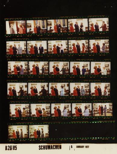 | Keywords: Ford B2685 NLGRF photo contact sheet (1977-01-06)(Gerald Ford Library).jpg White House Photographic Office WHPO is housed at the Gerald R Ford Presidential Library a branch of the National Archives and Records Administration NARA <br/><br/> This file is a 200 dpi photo contact sheet having images from roll of film B2685 of the August 9 1974 - January 20 1977 Gerald R Ford White House Photographic Office Series A0001-A9999 and B0001-B2886 photographs <br/><br/> The date on the photo contact sheet is the date the roll of film was processed not necessarily the date the photographs were taken See table below for additional details 1977-01-06 Gerald R Ford Presidential Library Image http //www fordlibrarymuseum gov/library/whphotos/B2685_NLGRF jpg B2685_NLGRF jpg from http //www fordlibrarymuseum gov/library/whphotos/19770106whpo pdf White House Photographs January 6 1977 of the http //www fordlibrarymuseum gov/Library/whphotos/whpo asp White House Photographic Collection page White House Photographic Office WHPO - Schumacher PD-USGov Institution Institution Gerald R Ford Presidential Library Table wikitable sortable + Photo contact sheet B2685 U S President Ford Administration Gerald R Ford Library Frame s Tone Subject proper Subject generic Names Geographic Location Photographer Date - 5 Color Prior to Photo Opportunity with First Lady's East Wing Staff standing by doorway to Oval Office laughing Buendorf Betty Ford White House Steward Scheduling and Advance Office Schumacher 1977-01-06 - 6-7 Color Prior to Photo Opportunity with First Lady's East Wing Staff standing posing; arm-inarm; medium range portrait GRF Betty Ford Oval Office Schumacher 1977-01-06 - 8 Color Photo Opportunity with First Lady's East Wing Staff greeting handshaking talking smiling GRF Betty Ford Unidentified Woman S Porter J Cooke P Houk E O'Neill S Amchan K Goltra M Haas T Haenn M Patterson C von Pawel Chirdon Porembka Matson S Quenville F Parris L Baker P Howard A Watwood B Besednik J Ingersoll K McCann Oval Office Schumacher 1977-01-06 - 9 Color Photo Opportunity with First Lady's East Wing Staff greeting handshaking talking smiling GRF Betty Ford Unidentified Man T McCoy H Smith R Armentrout W Gemmell J Scarfone A Schiavoni Oval Office Schumacher 1977-01-06 - 10 Color Photo Opportunity with First Lady's East Wing Staff greeting handshaking talking smiling GRF Betty Ford Unidentified Man T McCoy H Smith R Armentrout W Gemmell J Scarfone A Schiavoni Oval Office Schumacher 1977-01-06 - 11 Color Photo Opportunity with First Lady's East Wing Staff greeting handshaking talking smiling GRF Betty Ford Unidentified Man T McCoy H Smith R Armentrout W Gemmell J Scarfone A Schiavoni Oval Office Schumacher 1977-01-06 - 12 Color Photo Opportunity with First Lady's East Wing Staff greeting handshaking talking smiling; woman embracing GRF GRF Betty Ford Unidentified Woman S Porter J Cooke P Houk E O'Neill S Amchan K Goltra M Haas T Haenn M Patterson C von Pawel Chirdon Porembka Matson S Quenville F Parris L Baker P Howard A Watwood B Besednik J Ingersoll K McCann Oval Office Schumacher 1977-01-06 - 13 Color Photo Opportunity with First Lady's East Wing Staff greeting handshaking talking smiling GRF Betty Ford Unidentified Woman S Porter J Cooke P Houk E O'Neill S Amchan K Goltra M Haas T Haenn M Patterson C von Pawel Chirdon Porembka Matson S Quenville F Parris L Baker P Howard A Watwood B Besednik J Ingersoll K McCann Oval Office Schumacher 1977-01-06 - 14-15 Color Photo Opportunity with First Lady's East Wing Staff greeting handshaking talking smiling GRF Betty Ford Unidentified Woman S Porter J Cooke P Houk E O'Neill S Amchan K Goltra M Haas T Haenn M Patterson C von Pawel Chirdon Porembka Matson S Quenville F Parris L Baker P Howard A Watwood B Besednik J Ingersoll K McCann Oval Office Schumacher 1977-01-06 - 16-17 Color Photo Opportunity with First Lady's East Wing Staff greeting handshaking talking smiling GRF Betty Ford Unidentified Woman S Porter J Cooke P Houk E O'Neill S Amchan K Goltra M Haas T Haenn M Patterson C von Pawel Chirdon Porembka Matson S Quenville F Parris L Baker P Howard A Watwood B Besednik J Ingersoll K McCann Oval Office Schumacher 1977-01-06 - 18 Color Photo Opportunity with First Lady's East Wing Staff greeting handshaking talking smiling GRF Betty Ford Unidentified Woman S Porter J Cooke P Houk E O'Neill S Amchan K Goltra M Haas T Haenn M Patterson C von Pawel Chirdon Porembka Matson S Quenville F Parris L Baker P Howard A Watwood B Besednik J Ingersoll K McCann Oval Office Schumacher 1977-01-06 - 19 Color Photo Opportunity with First Lady's East Wing Staff greeting handshaking talking smiling GRF Betty Ford Unidentified Woman S Porter J Cooke P Houk E O'Neill S Amchan K Goltra M Haas T Haenn M Patterson C von Pawel Chirdon Porembka Matson S Quenville F Parris L Baker P Howard A Watwood B Besednik J Ingersoll K McCann Oval Office Schumacher 1977-01-06 - 20-21 Color Photo Opportunity with First Lady's East Wing Staff greeting handshaking talking smiling GRF Betty Ford Unidentified Woman S Porter J Cooke P Houk E O'Neill S Amchan K Goltra M Haas T Haenn M Patterson C von Pawel Chirdon Porembka Matson S Quenville F Parris L Baker P Howard A Watwood B Besednik J Ingersoll K McCann Oval Office Schumacher 1977-01-06 - 22 Color Photo Opportunity with First Lady's East Wing Staff greeting handshaking talking smiling GRF Betty Ford Unidentified Woman S Porter J Cooke P Houk E O'Neill S Amchan K Goltra M Haas T Haenn M Patterson C von Pawel Chirdon Porembka Matson S Quenville F Parris L Baker P Howard A Watwood B Besednik J Ingersoll K McCann Oval Office Schumacher 1977-01-06 - 23 Color Photo Opportunity with First Lady's East Wing Staff greeting handshaking talking smiling GRF Betty Ford Unidentified Woman S Porter J Cooke P Houk E O'Neill S Amchan K Goltra M Haas T Haenn M Patterson C von Pawel Chirdon Porembka Matson S Quenville F Parris L Baker P Howard A Watwood B Besednik J Ingersoll K McCann