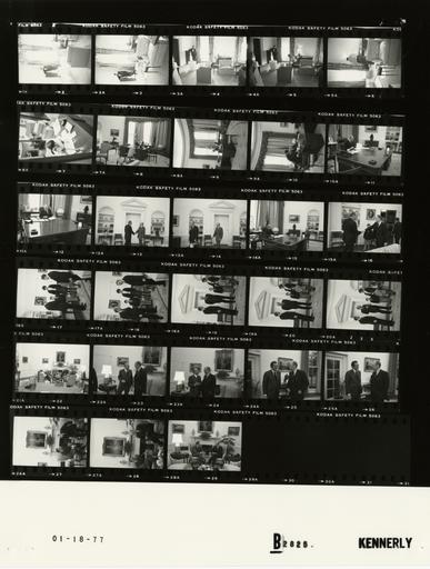 Keywords: Ford B2825 NLGRF photo contact sheet (1977-01-18)(Gerald Ford Library).jpg White House Photographic Office WHPO is housed at the Gerald R Ford Presidential Library a branch of the National Archives and Records Administration NARA <br/><br/> This file is a 200 dpi photo contact sheet having images from roll of film B2825 of the August 9 1974 - January 20 1977 Gerald R Ford White House Photographic Office Series A0001-A9999 and B0001-B2886 photographs <br/><br/> The date on the photo contact sheet is the date the roll of film was processed not necessarily the date the photographs were taken See table below for additional details 1977-01-18 Gerald R Ford Presidential Library Image http //www fordlibrarymuseum gov/library/whphotos/B2825_NLGRF jpg B2825_NLGRF jpg from http //www fordlibrarymuseum gov/library/whphotos/19770118whpo pdf White House Photographs January 18 1977 of the http //www fordlibrarymuseum gov/Library/whphotos/whpo asp White House Photographic Collection page White House Photographic Office WHPO <br/> Creator David Hume Kennerly PD-USGov Institution Institution Gerald R Ford Presidential Library Table wikitable sortable + Photo contact sheet B2825 U S President Ford Administration Gerald R Ford Library Frame s Tone Subject proper Subject generic Names Geographic Location Photographer Date - 2-6 BW Last-Minute Packing of Ford Material Prior to Transition to President Jimmy Carter Usher standing leaning on wall hand propping head; man packing boxes; various angles and distances; both not in every frame White House Usher Unidentified Man Second Floor - President's Bedroom Kennerly 1977-01-18 - 7 BW Last-Minute Packing of Ford Material Prior to Transition to President Jimmy Carter seated at desk talking on telephone; boxes stacked in background Unidentified Woman Unidentified White House Office Kennerly 1977-01-18 - 8-12 BW GRF seated at desk working; O'Donnell leaning forward in 3rd fame only; various angles and distances GRF O'Donnell Oval Office Kennerly 1977-01-18 - 13-14 BW Meeting with US Representative from Louisiana LA greeting handshaking walking toward desk GRF Rep Waggonner Oval Office Kennerly 1977-01-18 - 15 BW Meeting with US Representative from Louisiana LA seated at desk talking GRF Rep Waggonner Oval Office Kennerly 1977-01-18 - 16-21 BW Meeting with US Senator from Oregon OR greeting handshaking standing talking posing; all not in every frame GRF Sen Packwood; Georgie Packwood Billy Shyla Packwood Oval Office Kennerly 1977-01-18 - 22 BW Meeting with Correspondent Christian Science Monitor seated near fireplace talking; long shot; woman's back to camera GRF Godfrey Sperling Nessen Unidentified Woman Oval Office Kennerly 1977-01-18 - 23-24 BW Meeting with Correspondent Christian Science Monitor standing talking laughing GRF Godfrey Sperling Oval Office Kennerly 1977-01-18 - 25-26 BW Meeting with Chairman Republican National Committee RNC standing talking GRF William Brock Oval Office Kennerly 1977-01-18 - 27-29 BW Meeting with Chairman Republican National Committee RNC seated talking near fireplace GRF William Brock Oval Office Kennerly 1977-01-18 Gerald R Ford Presidential Library and Museum-cooperation PD-USGov Contact sheets by the Ford White House January 1977 Photographs by David Hume Kennerly from 1977 |