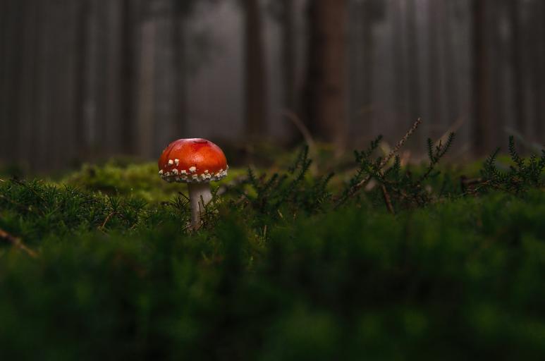 Keywords: forest fly agaric fog moss fliegenpilz red fly agaric mushroom toxic nature lucky guy autumn forest red macro autumn flash light points evening