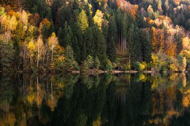 Keywords: forest forest landscape tree nature landscape autumn autumn colours water golden autumn lake bank mood mirroring water reflection golden october