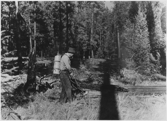 | Keywords: Forest Guard Mathew Dick using propane gas backfiring torch to set backfire near fire line. For fire suppression... - NARA - 298670.tif Scope and content Photographic reports compiled by Harold Weaver illustrate forest management on Indian Reservation forests of Washington and Oregon mainly on Colville where Weaver was Forest supervisor before becoming Regional Forester in 1960 Ther are a few photos of California and Montana and reports of scientific field trips General notes 298670 Local identifier Department of the Interior Bureau of Indian Affairs Portland Area Office Natural Resources 1950 - NARA's Pacific Alaska Region Seattle NRIAS 6125 Sand Point Way NE Seattle WA 98115-7999 1943-09-21 Record group Record Group 75 Records of the Bureau of Indian Affairs 1793 - 1999 Record group ARC 404 Photographic Reports by Harold Weaver Forester compiled ca 1938 - ca 1966 documenting the period ca 1959 - ca 1966 Series ARC 298669 File unit File unit ARC Variant control numbers NAIL Control Number NRIS-75-PAOWEAVER-BURN43 2 yes Other versions <gallery> File Forest_Guard_Mathew_Dick_using_propane_gas_backfiring_torch_to_set_backfire_near_fire_line _For_fire_suppression _-_NARA_-_298670 tif tif File Forest_Guard_Mathew_Dick_using_propane_gas_backfiring_torch_to_set_backfire_near_fire_line _For_fire_suppression _-_NARA_-_298670 jpg jpg </gallery> NARA-cooperation PD-USGov NARA TIF images with categorized JPGs |