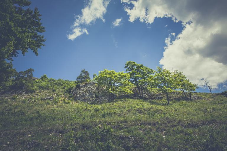 Keywords: forest hill landscape meadow green nature sky outlook valley clouds field trees hilly idyllic panorama forests silent upper franconia maintal staffelstein scale mountain