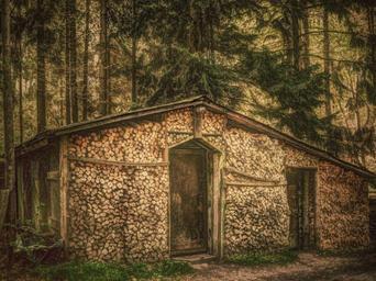 MAKE A MEME View Large Image forest hut log cabin wood old firewood