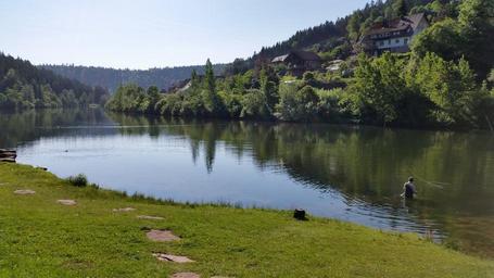 Keywords: forest lake nature landscape water trees mirroring bank black forest