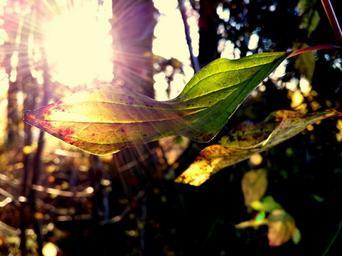 Keywords: forest leaf nature autumn flora leaves glooming backlight sunlight beams shine outdoor woods vegetation countryside