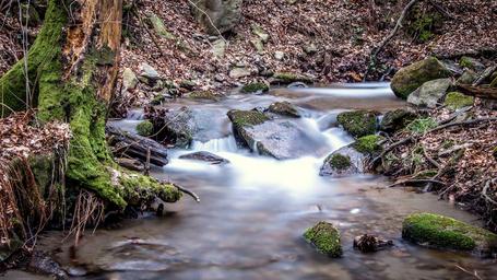 Keywords: forest moss stream nature leaves landscape water flowing atmosphere