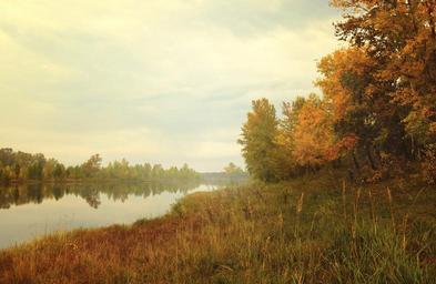 Keywords: forest nature landscape colorful lonely autumn trees gold leaves fog