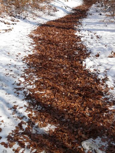 Keywords: forest path trail migratory path path run hiking leaves winter snow wintry snowy cold white