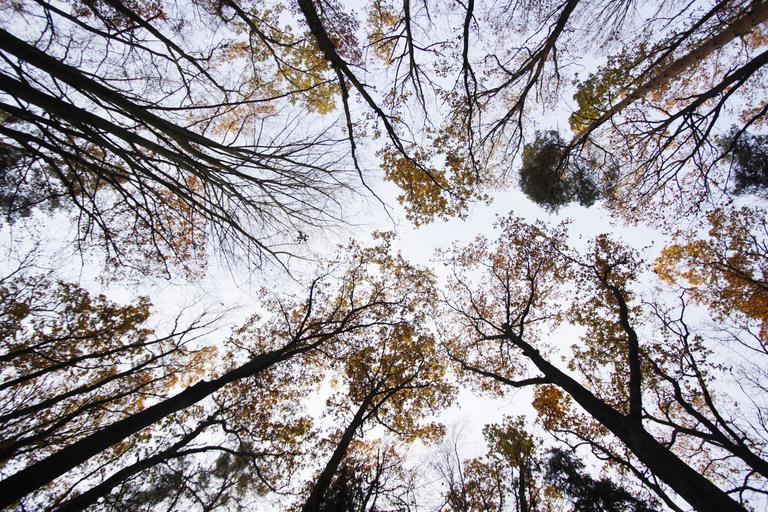 Keywords: forest tree colors nature evergreen tree the crown of the tree treetops branches autumnal autumn yellow golden autumn