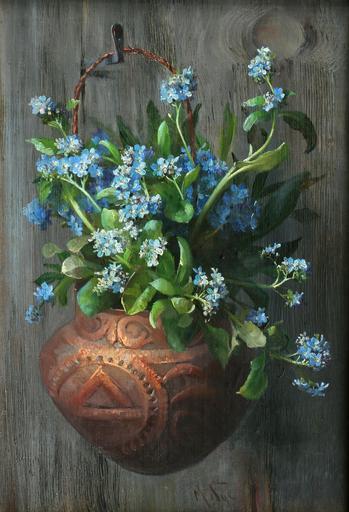 Keywords: Forget-Me-Nots by Marie Nyl-Frosch.jpg oil canvas board 14-1/2 x 9-3/4 inches Private Collection Public domain May be reproduced without permission PD-Art Oil paintings of flowers Unidentified Myosotis 19th-century still life paintings Houseplants in art Marie Nyl-Frosch |