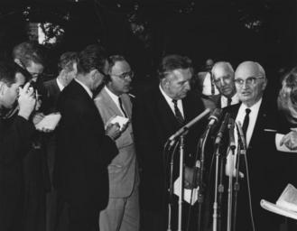Keywords: u.s. national archives usnationalarchives jfk presidential library jfkpresidentiallibrary blackandwhite people monochrome black and white Original Caption: Former President Harry S. Truman Speaks to Reporters We are looking for your help in identifying unknown people in our White House Photographs collection. If you have any information about this photograph, please post a comment, including any relevant sources, for the catalogers at the John F. Kennedy Presidential Library. Thank you! Local Identifier: JFKWHP-AR7974-C Created By: Department of the Interior. National Park Service (II). Region VI, National Capital Region. From: Collection JFK-WHP: White House Photographs, 12/19/1960 - 03/11/1964 Contact: John F. Kennedy Library (LP-JFK), Columbia Point Boston, MA 02125-3398 Phone: 617-514-1600 Fax: 617-514-1652 Email: kennedy.library@nara.gov Production Dates: 13 June 1963 Photo Credit: Abbie Rowe. White House Photographs. John F. Kennedy Presidential Library and Museum, Boston Scope and Content Note: In this photograph, former President Harry S. Truman (far right) speaks with members of the press following a meeting with President John F. Kennedy at the White House, Washington, D.C. Persistent URL: JFK Library URL: www.jfklibrary.org/Asset-Viewer/Archives/JFKWHP-AR7974-C.... Access Restrictions: Unrestricted Use Restrictions: Unrestricted Original Caption: Former President Harry S. Truman Speaks to Reporters We are looking for your help in identifying unknown people in our White House Photographs collection. If you have any information about this photograph, please post a comment, including any relevant sources, for the catalogers at the John F. Kennedy Presidential Library. Thank you! Local Identifier: JFKWHP-AR7974-C Created By: Department of the Interior. National Park Service (II). Region VI, National Capital Region. From: Collection JFK-WHP: White House Photographs, 12/19/1960 - 03/11/1964 Contact: John F. Kennedy Library (LP-JFK), Columbia Point Boston, MA 02125-3398 Phone: 617-514-1600 Fax: 617-514-1652 Email: kennedy.library@nara.gov Production Dates: 13 June 1963 Photo Credit: Abbie Rowe. White House Photographs. John F. Kennedy Presidential Library and Museum, Boston Scope and Content Note: In this photograph, former President Harry S. Truman (far right) speaks with members of the press following a meeting with President John F. Kennedy at the White House, Washington, D.C. Persistent URL: JFK Library URL: www.jfklibrary.org/Asset-Viewer/Archives/JFKWHP-AR7974-C.... Access Restrictions: Unrestricted Use Restrictions: Unrestricted |