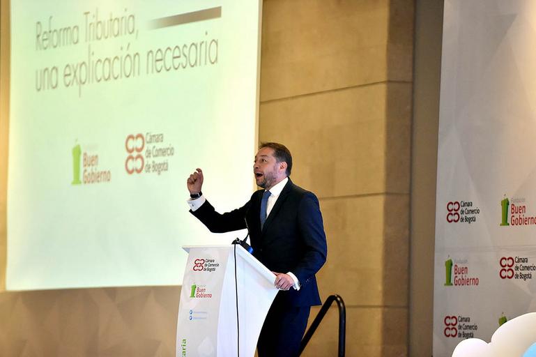 Keywords: La difícil coyuntura económica generada por la caída en los precios del petróleo y la caída de la inversión, entre otros factores, llevó a la necesidad de plantear una reforma tributaria estructural para aumentar el recaudo. Para profundizar y debatir sobre el proyecto presentado por el Gobierno Nacional ante el Congreso de la República, la Fundación Buen Gobierno y la Cámara de Comercio de Bogotá adelantaron este foro con la presencia del Ministro de Hacienda y el director de la DIAN. Expertos tributaristas y representantes de gremios ante más de mil asistentes, debatieron el tema y dieron luces sobre la conveniencia de la reforma. /Crédito CCB. cámara de comercio bogotá