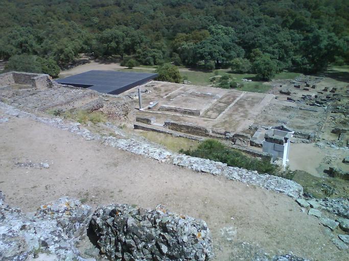 Keywords: Foro vista general.JPG en Vista general de la terraza correspondiente al Foro a su derecha se puede observa el Altar de Mercurio en la calle de entrada al recinto own Aegon2001 2009-04 Munigua