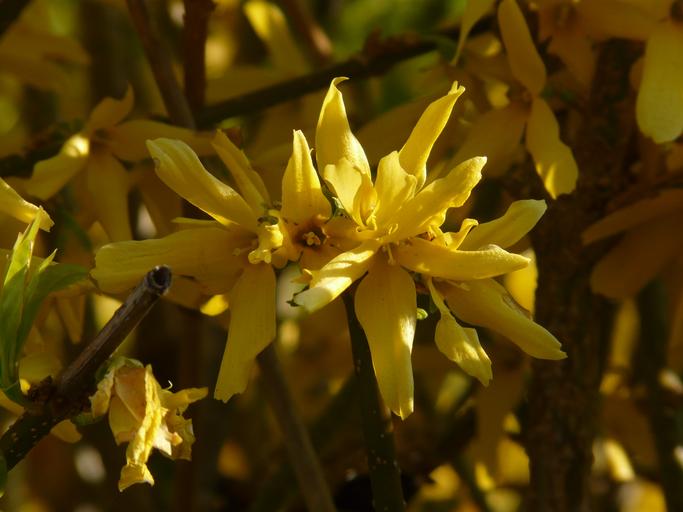 Keywords: forsythia gold lilac golden bells ornamental shrub blossom bloom plant spring yellow bloom