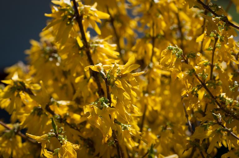 Keywords: forsythia gold lilac golden bells bush yellow flowers flowers yellow spring bloom garden nature plant close sunlight ornamental shrub