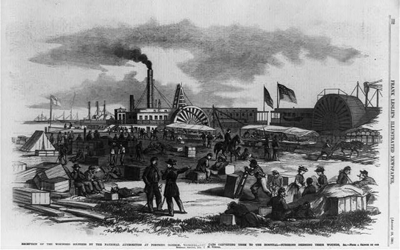 | Keywords: Fort monroe wounded leslie.jpg Reception of the wounded soldiers by the national authorities at Fortress Monroe Va Library of Congress Illus in Frank Leslie's illustrated newspaper 1862 Aug 16 p 332 1862 J H Schell Public domain http //memory loc gov/master/pnp/cph/3b30000/3b36000/3b36800/3b36892u tif LOC info TITLE Reception of the wounded soldiers by the national authorities at Fortress Monroe Va - the cars conveying them to the hospital - surgeons dressing their wounds CALL NUMBER Illus in AP2 L52 1862 Case Y P P REPRODUCTION NUMBER LC-USZ62-90542 b w film copy neg No known restrictions on publication MEDIUM 1 print wood engraving CREATED/PUBLISHED 1862 RELATED NAMES Schell J H artist NOTES After a sketch by J H Schell Illus in Frank Leslie's illustrated newspaper 1862 Aug 16 p 332 SUBJECTS United States--History--Civil War 1861-1865--Medical aspects Military life--Union--Virginia--Fort Monroe--1860-1870 FORMAT Periodical illustrations 1860-1870 Wood engravings 1860-1870 DIGITAL ID b w film copy neg cph 3b36892 http //hdl loc gov/loc pnp/cph 3b36892 VIDEO FRAME ID LCPP003B-36892 from b w film copy neg CARD 96516942 PD-old 1862 in Virginia Wounded of the American Civil War Fort Monroe Virginia Paddle steamers of the Chesapeake region Frank Leslie's Illustrated Newspaper Wounded people in art |