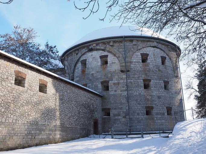 Keywords: fortress wall tower cross tower wilhelmsburg castle courtyard ulm ulmer defence line reduit federal fortress ulm citadel winter snow