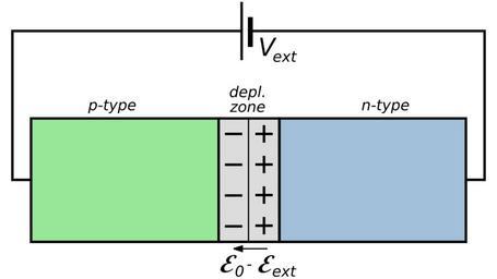 Keywords: Forward-Biased pn Junction.svg Diagram of a pn junction under forward bias the resultant electric field <math>\mathcal E _0-\mathcal E _ ext </math> the depletion zone the space charges and the types of semiconductor Own drawing done in Inkscape 2007-02-20 inductiveload Reverse Biased pn Junction PN-junction diagrams |