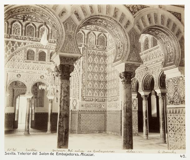 | Keywords: Fotografi av Sevilla. Alcázar, Interior del Salon de Embajadores - Hallwylska museet - 104789.tif original caption Fotografi av Sevilla Alcázar Interior del Salon de Embajadores<br/> Nyckelord Fotografi Sevilla Resealbum Foto HWY place of origin original filename hm_dig18420 9269 inventory number HWY LXVI J 42 104789 PD Jenny Bergensten Historical images of Seville Jenny Bergensten Media contributed by LSH 2015-11 Fotografier från resor genom Spanien Portugal och Marocco 1895 1890s photographs of Spain Andalusia in the 1890s |