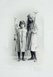 Keywords: Fotografi från julafton firade med familjen von Geijer - Hallwylska museet - 105370.tif LSH artwork sv FOTOGRAFIER m m FRÅN JULAFTNAR firade med familjen von Geijer 1 Från år 1913 på Wegeholm Fotografi Av Margit och Erik von Geijer som småbarn I högra nedre hörnet signerat Emil Bruno Hälsingborg Höjd 19 cm; bredd 11 cm Gåva till Wilhelmina von Hallwyl januari eller februari 1914 från hennes dotter Irma 2 Från år 1914 på Wegeholm Julgransflagga svensk Av silkespapper med stång av ståltråd Längs korsets horisontala del med svart bläck skrivet Hopp och Trohet Jul 1914 Längd 13 cm bredd 7 cm Stång längd 12 cm Gåva till Walther von Hallwyl Julaftonen 1914 från hans dotterdotter och dotterson Margit och Erik von Geijer Julgransflagga svensk och två fotografier Flagga Som den nyss beskrivna Fotografier På kort 1 Margit von Geijer som Svea stående med utslaget hår i fotsid vit dräkt med slöja pannband mörkt axelband och sandaler i högra handen Sveriges flagga med stången stödd mot marken i vänstra handen riksskölden med Lilla riksvapnet Tre kronor På kort 2 Erik von Geijer som tomte På båda i högra nedre hörnet signerat Emil Bruno Hälsingborg Kort 1 höjd 17 5 cm bredd 7 5 cm Kort 2 höjd 17 7 cm bredd 7 5 cm Gåva till Wilhelmina von Hallwyl Julaftonen 1914 från hennes dotterdotter och dotterson Margit och Erik von Geijer För beskrivning av julfirandet på Wegeholm se detta inv nummer i katalogverket Flaggorna inköpta av Irma von Geijer hos en handlare i Hälsingborg Fotografierna tagna Januari 1915 hos fotografen Emil Bruno Helsingborg 3 Från år 1915 på Wegeholm Solros Helianthus Av silkespapper och sammet med stjälk av ståltråd Blomkorg av gult kräpperat papper samt brun sammet stjälken lindad med grönt papper med foderblad och tre stjälkblad av dylikt papper Stjälk längd 31 cm Blomma diameter 14 cm Gåva till Walther von Hallwyl Julaftonen 1915 från hans dotterdotter och dotterson Margit och Erik von Geijer Solros Helianthus och två fotografier Solros Som den nyss beskrivna Fotografier På kort 1 Margit och Erik von Geijer stående hand i hand; båda klädda till änglar I högra nedre hörnet signerat Emil Bruno Hälsingborg Höjd 11 8 cm bredd 16 7 cm På kort 2 Samma barn stående i de s k arkaderna framför en dörr på Wegeholms borg samt hållande i dragstången till en blomstersmyckad liten vagn; båda klädda som på kort 1 Gåva till Wilhelmina von Hallwyl f Kempe julaftonen 1915 från Margit och Erik Geijer För detaljer om julfirandet se detta inv nr i katalogverket Fotografierna tagna Februari 1916 av fotografen Emil Bruno Helsingborg 4 Från år 1916 på Wegeholm Docka Lockigt ljusgult hår blåa ögon och röda läppar; clownkostym med bred krage och toppig mössa; på kostymen stora blåa rosetter av silkespapper Längd utan mössa 16 5 cm Mössa höjd 3 8 cm Gåva till Walther von Hallwyl julaftonen 1916 från Margit och Erik von Geijer Docka och fotografi Docka Som den nyss beskrivna Fotografi Margit och Erik von Geijer som Pierrette och Pierrot I högra nedre hörnet signerat Emil Bruno Hälsingborg Höjd 17 9 cm Bredd 12 4 cm Gåva till Wilhelmina von Hallwyl f Kempe Julaftonen 1916 från Margit och Erik von Geijer För detaljer om julfirandet se detta inv nr i katalogverket 5 Från år 1917 i Hamngatan 4 Stockholm Stjärna med spira Stjärna av guldpapper spira av trä Längd 34 5 cm Stjärna diameter 12 cm Spira längd 25 cm Gåva till Walther von Hallwyl Julaftonen 1917 från Margit och Erik von Geijer För detaljer om julfirandet se detta inventarienummer i katalogverket Fotografien tagen Februari 1918 av fotografen Herm Hamnqvist Atelier Bruno Södra Storgatan 3 Helsingborg 6 Från år 1918 i Hamngatan 4 Stockholm Penséer två stycken Av vitt s k engelskt skinn bomullssatin med stjälk av ståltråd Pressade samt handmålade i färger den ena med vit och den andra med gul mitt; stjälkarna gröna lindade med tyg som blommorna vardera med ett grönt stjälkblad Längd omkring 18 cm Gåva till Walther von Hallwyl julaftonen 1918 från Margit och Erik von Geijer Penséer två stycken och fotografi Penséer Som de nyss beskrivna Fotografi Margit och Erik von Geijer stående klädda till penséer Till höger om bilderna signerat Ferd Flodin -19 Höjd 22 8 cm Bredd 14 5 cm Gåva till Wilhelmina von Hallwyl Julaftonen 1918 från Margit och Erik von Geijer Penséerna inköpta av Irma von Geijer hos en handlare i Helsingborg Fotografien tagen 28 December 1918 av fotografen Ferd Flodin Hamngatan 3 A Stockholm 7 Från år 1919 i Hamngatan 4 Stockholm Snöboll Av vit bomullsvadd Oregelbundet klotrund utanpå beströdd med frostliknande silverglitter samt utan snöre Genomskärning omkring 4 cm Gåva till Walther von Hallwyl Julaftonen 1919 från Margit och Erik von Geijer Snöboll och fotografi Snöboll Som den nyss beskrivna Fotografi Margit och Erik von Geijer stående vända halvt åt vänster Den förstnämnda till höger båda i stor rund mössa och lång kappa av vadd med glitter samt vita strumpor; framför figurerna två stora snöbollar I högra nedre hörnet signerat Brink Foto Höjd 16 6 cm Bredd 11 2 cm Gåva till Wilhelmina von Hallwyl f Kempe julaftonen 1919 från Margit Johanna och Erik von Geijer För detaljer om julfirandet se detta inv nr i katalogverket Snöbollarna inköpta av Irma von Geijer i Buttericks Mönsteraffär Stockholm Fotografien tagen Januari 1920 av fotografen Gustaf Brink Ängelholm 8 Från år 1920 i Hamngatan 4 Stockholm Skogstomte I form av en brandgul flugsvamp Av tyg bommullsvadd och trä m m Höjd 10 8 cm Hatt diameter 9 1 cm Fotplatta diameter 5 9 cm Gåva till Walther von Hallwyl Julaftonen 1920 från Margit och Erik von Geijer Skogstomte och fotografi Skogstomte Som den nyss beskrivna men röd med vita plättar på svamphatten på kortet vid högra änden målat ett paket under en drypande lacktång Fotografi Margit och Erik von Geijer samt Elionore Joseph alla ståe