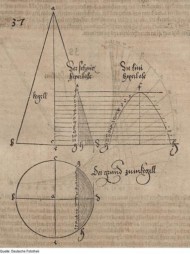 Keywords: Fotothek df tg 0000677 Geometrie ^ Hyperbel ^ Kegel.jpg Creator Albrecht Dürer Scan Deutsche Fotothek df_tg_0000677 color 2007 MIK-Center Berlin GmbH 88960677 Abbildung Nr 37 Arnheim Hyperbolischer Schnitt eines Drehkegels Papier Holzschnitt 16 9 x 11 9 cm Geometrie Hyperbel Kegel ppn264645545 1604 Druck Deutsche Fotothek gefördert von der Deutschen Forschungsgemeinschaft Projekt Technikgeschichte 16 /17 Jh Verwalter Dresden Sächsische Landesbibliothek - Staats- und Universitätsbibliothek Dresden Art plast 800 misc 1 Herstellung Herstellung Jansen Jan Verleger aus Dürer Albrecht Buch Opera Alberti Dureri Das ist Alle Bücher des weitberühmbten und Künstreichen Mathematici und Mahlers Albrechten Durers von Nürenberg so viel deren von ihm selbst in An 1525 und 1528 kurtz vor und gleich nach seinem todt in Truck geben Nemblich vier von underweisung oder underrichtung der messung mit dem Circkul und Richtscheit in Linien ebenen und gantzen Corporen Item vier von der Proportion deß Menschlichen Corpers und letztlich eins von der Befestigung der Stätt Schlösser und Flecken etc Allen respective Mahlern Steinmetzern Bildthäwern nützlich und nohtwendig Der aller scharffsinnigst Euclides/ hat den grundt der Geometria zusammen gesetzt/ wer den selben wol versteht/ der darff hernach geschrieben ding gar nit/ dann sie sind alleyn den jungen und denen so sonst niemandt haben der sie trewlich underweyst geschryben SLUB Art plast 800 misc 1 Fotothek-License PD-old-100 Conic sections Hyperbolas Opera Alberti Dureri |