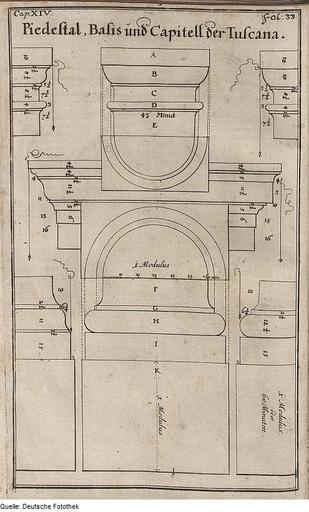 | Keywords: Fotothek df tg 0001619 Architektur ^ Bauwesen ^ Säule ^ Kapitell ^ toskanische Ordnung.jpg Scan Deutsche Fotothek df_tg_0001619 color 2007 MIK-Center Berlin GmbH 88961619 Kap 14 Fig 3 Bl 33 Nürnberg Piedestal Basis und Kapitell der Säule toskanischer Ordnung Papier Kupferstich 31 7 x 19 5 cm Architektur Bauwesen Säule Kapitell toskanische Ordnung ppn26553190X 1698 Druck Deutsche Fotothek gefördert von der Deutschen Forschungsgemeinschaft Projekt Technikgeschichte 16 /17 Jh Verwalter Dresden Sächsische Landesbibliothek - Staats- und Universitätsbibliothek Dresden Archit 188 Herstellung Herstellung Endter Verleger aus Palladio Andreas Böckler Georg Andreas Hrsg Buch Die Baumeisterin Pallas Oder Der in Teutschland entstandene Palladius das ist Des vortrefflich-Italiänischen Baumeisters Andreae Palladii Zwey Bücher Von der Baukunst Deren Erstes I Von denen Materialien die zu dem Bauen insgemein gehören Das Zweyte tractiret I Von denen Zierrathen der gemeinen Gebäue Das XIV Capitel Von der Ordine Tuscano SLUB Archit 188 Fotothek-License PD-old-100 Scans Old Manuscripts from the Deutsche Fotothek |