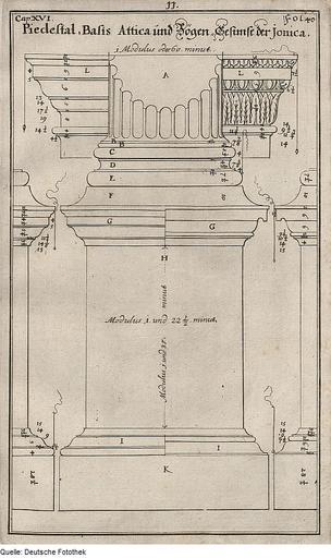 Keywords: Fotothek df tg 0001627 Architektur ^ Bauwesen ^ Säule ^ Attika ^ ionische Ordnung.jpg Scan Deutsche Fotothek df_tg_0001627 color 2007 MIK-Center Berlin GmbH 88961627 Kap 16 Fig 11 Bl 40 Nürnberg Piedestal Basis Attika und Gesimsbögen der Säule ionischer Ordnung Papier Kupferstich 31 9 x 19 3 cm Architektur Bauwesen Säule Attika ionische Ordnung ppn26553190X 1698 Druck Deutsche Fotothek gefördert von der Deutschen Forschungsgemeinschaft Projekt Technikgeschichte 16 /17 Jh Verwalter Dresden Sächsische Landesbibliothek - Staats- und Universitätsbibliothek Dresden Archit 188 Herstellung Herstellung Endter Verleger aus Palladio Andreas Böckler Georg Andreas Hrsg Buch Die Baumeisterin Pallas Oder Der in Teutschland entstandene Palladius das ist Des vortrefflich-Italiänischen Baumeisters Andreae Palladii Zwey Bücher Von der Baukunst Deren Erstes I Von denen Materialien die zu dem Bauen insgemein gehören Das Zweyte tractiret I Von denen Zierrathen der gemeinen Gebäue Das XVI Capitel Von dem Ordine Jonico SLUB Archit 188 Fotothek-License PD-old-100 Scans Old Manuscripts from the Deutsche Fotothek |