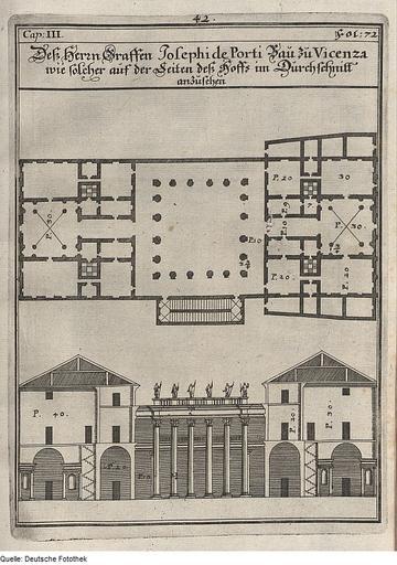 Keywords: Fotothek df tg 0001658 Architektur ^ Bauwesen ^ Gebäude.jpg Scan Deutsche Fotothek df_tg_0001658 color 2007 MIK-Center Berlin GmbH 88961658 Kap 3 Fig 42 Bl 72 Nürnberg Grundriss und Seitenansicht des Palazzo Porti in Vicenza Papier Kupferstich 24 9 x 18 2 cm Architektur Bauwesen Gebäude ppn26553190X 1698 Druck Deutsche Fotothek gefördert von der Deutschen Forschungsgemeinschaft Projekt Technikgeschichte 16 /17 Jh Verwalter Dresden Sächsische Landesbibliothek - Staats- und Universitätsbibliothek Dresden Archit 188 Herstellung Herstellung Endter Verleger aus Palladio Andreas Böckler Georg Andreas Hrsg Buch Die Baumeisterin Pallas Oder Der in Teutschland entstandene Palladius das ist Des vortrefflich-Italiänischen Baumeisters Andreae Palladii Zwey Bücher Von der Baukunst Deren Erstes I Von denen Materialien die zu dem Bauen insgemein gehören Das Zweyte tractiret I Von denen Zierrathen der gemeinen Gebäue Das III Capitel Von den Stadt-Gebäuen SLUB Archit 188 Fotothek-License PD-old-100 Scans Old Manuscripts from the Deutsche Fotothek |
