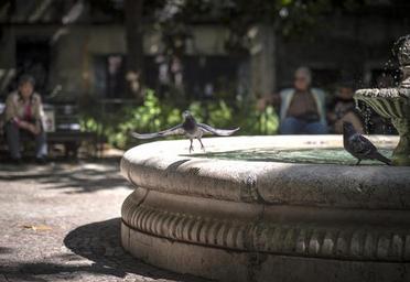 Keywords: fountain birds park outdoor nature people relax scenic tranquil
