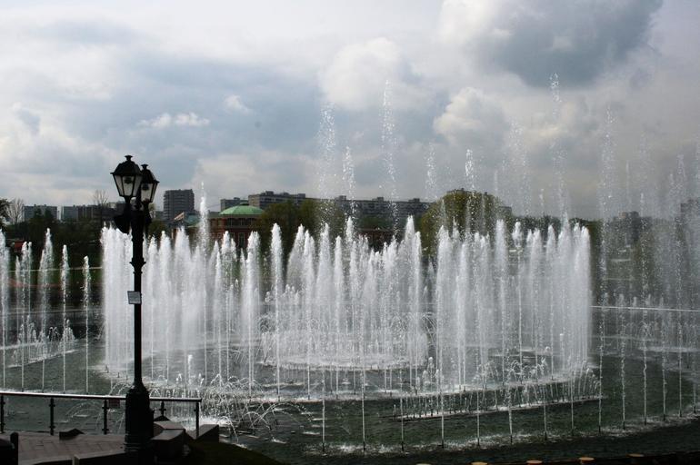 Keywords: fountain royal ponds water spouting spraying variating heights clouds sky