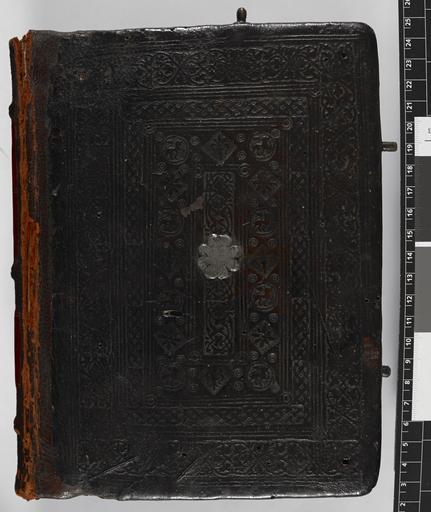 Keywords: Four Gospels (Gregory-Aland 2277 -=816-) --Date 11th century-14th century - - Upper cover (Add MS 37001).jpg Style Panel design Byzantine Single tools design; Caption Upper cover; Colour Black; Edge Unspecified exhibition history Decorative Technique Tooled in blind; Cover Material Goatskin includes morocco turkey etc Origin Eastern Mediterranean Provenance Spyridon Mustoxidi owned in the 15th-16th century ownership inscription f 258r Rebacked Wooden boards with pins protruding from foreedge With metal bosses similar in shape to Szirmai The archaelogy of medieval bookbinding 1999 figur 6 16 f and centrepiece flowerhead with eight petals object history Text 11-141c; Unspecified; Unspecified object type Cc-zero place of creation Binding Eastern Mediterranean place of discovery Unspecified British Library image http //www bl uk/catalogues/bookbindings/LargeImage aspx RecordId 020-000019544 ImageId ImageId 57781 Copyright BL Four Gospels Gregory-Aland 2277 816 Date 11th century-14th century Uploaded with GWToolset Four Gospels Gregory-Aland 2277 816 Date 11th century-14th century - Upper cover Add MS 37001 http //www webarchive org uk/bldatasets/bindings/add_ms_37001_fblefr jpg Bookbinding 15th-century bookbinding British Library Bookbindings Taken with Phase One IQ140 |