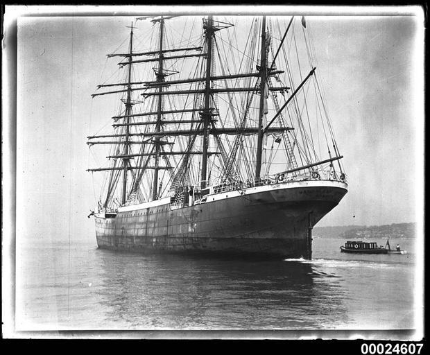 | Keywords: samuel j hood collection samueljhoodcollection barque foreign vessel foreignvessel harbour scenes harbourscenes sydney harbour sydneyharbour magdalene vinnen magdalenevinnen blackandwhite monochrome photo border black and white The four-masted steel barque, MAGDALENE VINNEN, was built in 1921 in Kiel, Germany for F A Vinnen and Company in Bremen. On 27 February 1933, under the command of Captain Lorenz Peters, MAGDALENE VINNEN sailed into Sydney Harbour. The masts were too tall to allow the vessel to pass under the Harbour Bridge to be berthed in Pyrmont, so it was moved to Number 2 wharf in Woolloomooloo. The barque was loaded with almost 16,000 bales of wool, the fourth largest shipment to have left Sydney, before it sailed the record-breaking 82-day voyage for Falmouth, England. The barque visited Australia again in 1935, with its cargo being wheat, lifted from Port Broughton in South Australia. The following year, the vessel was sold to Norddeutscher Lloyd, Bremen, renamed KOMMODORE JOHNSEN and used as a cargo carrier and sail-training ship. In 1945, the ship was awarded to the Soviet Union as war compensation and renamed SEDOV. When it was first built, it was the largest auxiliary barque in the world. To this day, it is still in operation and in 2011, it retained its ranking as the largest tall ship in the world. This photo is part of the Australian National Maritime Museum’s Samuel J. Hood Studio collection. Sam Hood (1872-1953) was a Sydney photographer with a passion for ships. His 60-year career spanned the romantic age of sail and two world wars. The photos in the collection were taken mainly in Sydney and Newcastle during the first half of the 20th century. The ANMM undertakes research and accepts public comments that enhance the information we hold about images in our collection. This record has been updated accordingly. Photographer: Samuel J. Hood Studio Collection Object no. 00024607 The four-masted steel barque, MAGDALENE VINNEN, was built in 1921 in Kiel, Germany for F A Vinnen and Company in Bremen. On 27 February 1933, under the command of Captain Lorenz Peters, MAGDALENE VINNEN sailed into Sydney Harbour. The masts were too tall to allow the vessel to pass under the Harbour Bridge to be berthed in Pyrmont, so it was moved to Number 2 wharf in Woolloomooloo. The barque was loaded with almost 16,000 bales of wool, the fourth largest shipment to have left Sydney, before it sailed the record-breaking 82-day voyage for Falmouth, England. The barque visited Australia again in 1935, with its cargo being wheat, lifted from Port Broughton in South Australia. The following year, the vessel was sold to Norddeutscher Lloyd, Bremen, renamed KOMMODORE JOHNSEN and used as a cargo carrier and sail-training ship. In 1945, the ship was awarded to the Soviet Union as war compensation and renamed SEDOV. When it was first built, it was the largest auxiliary barque in the world. To this day, it is still in operation and in 2011, it retained its ranking as the largest tall ship in the world. This photo is part of the Australian National Maritime Museum’s Samuel J. Hood Studio collection. Sam Hood (1872-1953) was a Sydney photographer with a passion for ships. His 60-year career spanned the romantic age of sail and two world wars. The photos in the collection were taken mainly in Sydney and Newcastle during the first half of the 20th century. The ANMM undertakes research and accepts public comments that enhance the information we hold about images in our collection. This record has been updated accordingly. Photographer: Samuel J. Hood Studio Collection Object no. 00024607 |