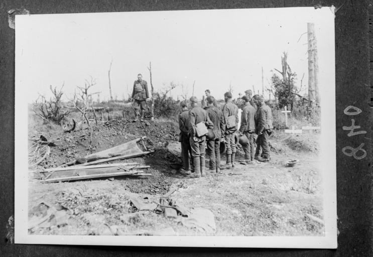 Keywords: the great war thegreatwar great war greatwar world war i worldwari world war one worldwarone the first world war thefirstworldwar wwi ww1 war grave wargrave soldiers soldier blackandwhite photo border monochrome outdoor serene black and white Four photographs of New Zealand soldiers in France during World War I. Top left (H838) shows soldiers putting fresh vegetables into ration bags at 2M Stores of a Wellington Regiment, Gommecourt, 28th of July 1918. Top right (H837) shows soldiers receiving their pay, Gommecourt, 1918. Bottom left (H832) shows a formal group portrait of a New Zealand Rifle Brigade raiding party with their captured weapons which include 13 machine guns photographed on the 28th of July 1918. Bottom right (H840) shows soldiers lined up at the graves of soldiers from Otago who were killed in a raid. Photographed at Gommecourt on the 26th of July 1918. Photographed by an unknown photographer in July 1918. Quantity: 1 b&w original negative(s). Physical Description: Glass negative Finding Aids: Prints in Photograph Archive in War History Album PA1-f-094, print numbers H832, H837, H838, and H840.. Four photographs of New Zealand soldiers in France, World War 1. Royal New Zealand Returned and Services' Association :New Zealand official negatives, World War 1914-1918. Ref: 1/1-002074-G. Alexander Turnbull Library, Wellington, New Zealand. natlib.govt.nz/records/22782657 Four photographs of New Zealand soldiers in France during World War I. Top left (H838) shows soldiers putting fresh vegetables into ration bags at 2M Stores of a Wellington Regiment, Gommecourt, 28th of July 1918. Top right (H837) shows soldiers receiving their pay, Gommecourt, 1918. Bottom left (H832) shows a formal group portrait of a New Zealand Rifle Brigade raiding party with their captured weapons which include 13 machine guns photographed on the 28th of July 1918. Bottom right (H840) shows soldiers lined up at the graves of soldiers from Otago who were killed in a raid. Photographed at Gommecourt on the 26th of July 1918. Photographed by an unknown photographer in July 1918. Quantity: 1 b&w original negative(s). Physical Description: Glass negative Finding Aids: Prints in Photograph Archive in War History Album PA1-f-094, print numbers H832, H837, H838, and H840.. Four photographs of New Zealand soldiers in France, World War 1. Royal New Zealand Returned and Services' Association :New Zealand official negatives, World War 1914-1918. Ref: 1/1-002074-G. Alexander Turnbull Library, Wellington, New Zealand. natlib.govt.nz/records/22782657 |