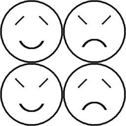 Keywords: Four temperament b.PNG Four simple smiley-like emoticons representing the four temperaments choleric melancholic phlegmatic and sanguine by the tilt of the eyes and the curve of the mouth These two features seem to represent high/low energy resp positive/negative humours I created the graphics file myself but I do not know the source of this idea As the four temperaments may not be represented absolutely convincingly by these four figures their merit lies in their simplicity If you can improve on these four figures without compromising their simplicity please do so and replace my file own Noe Also uploaded as with the emoticons in a different order thumb Four temperaments - 2 svg Four temperaments PNG smilies Smilies |