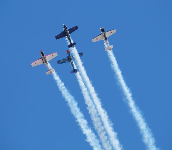 | Keywords: Four Yak-52s starting looping in formation.jpg Four Yak-52s starting looping in formation with smoke trails Yakovlev Yak-52 Private Red Star Aerobatic Team Photograph Hood Aerodrome Masterton New Zealand 2015-01-17 Pseudopanax wikipedia en Own 40 58 0 S 175 40 0 E Yakovlev Yak-52 Wings over Wairarapa 2015 Aircraft formation flight Smoke trails of aerobatic teams | ||||