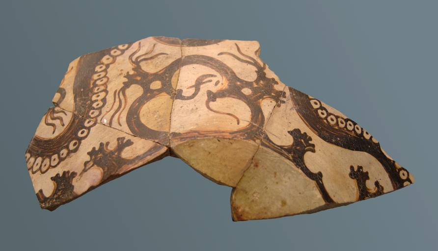 | Keywords: Fragment oil jug Staatliche Antikensammlungen 8598.jpg Fragment von einer Ölkanne Ägina 15 Jh v Chr Kretisch »Meeres-Stil« Oktopus Fangarme mit Saugnäpfen über Meeresgrund mit Seefedern und Korallen Fragment of an oil jug Aigina 15th century BC Minoan marine style octopus' tentacles above a sea ground corals and anemones Fragment d'une jarre à huile Égine XVe siècle av J -C « Style marin » minoen pieuvre tentacules avec ventouses au-dessus d'un fond marin coraux et anémones Museum Staatliche Antikensammlungen Room 1 object history credit line accession number Inv 8598 User Bibi Saint-Pol own work 2007-02-09 other versions Actiniaria Corals in art Octopuses in ancient Greek pottery Ancient Greek pottery in the Staatliche Antikensammlungen Staatliche Antikensammlungen - Room 1 15th century BC Marine style |