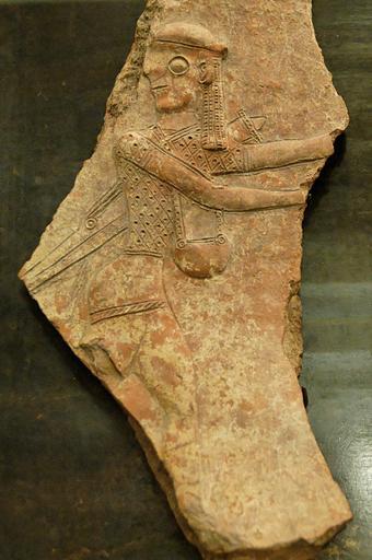 Keywords: Fragment Perseus Louvre CA937.jpg Perseus wearing a hat and the kibisis slung over his shoulder averts his gaze as he kills Medusa Fragment of an orientalizing relief pithos Terracotta with stamped and cut decoration Cycladic artwork ca 670 BC From Thebes Boeotia Persée portant un chapeau avec la kibisis sur l'épaule détourne le regard pendant qu'il tue Méduse Fragment d'un pithos orientalisant à reliefs Terre cuite à décor estampé et incisé art cycladique vers 670 av J -C Provenance Thèbes Béotie dimensions Museum Louvre Department of Greek Etruscan and Roman Antiquities Denon lower ground floor room 1 object history credit line Purchase 1898 accession number CA 937 Jastrow 2007 other versions 7th-century BC reliefs 670s BC pottery 660s BC pottery Perseus and Medusa in sculpture Pithoi Cycladic Orientalizing pottery Greek antiquities in the Louvre - Room 1 Fragments |