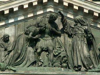 | Keywords: Fragment of west barelief on St.Isaac cathedral.jpg Fragment of Ivan Vitali's relief St Isaac blessing the Emperor Theodosius and his wife Flaccilla on the west front of Saint Isaac's cathedral Saint Petersburg Russia Ф агмент ельефа «Вст еча Исаакия Далматского с импе ато ом Феодосием» на западном ф онтоне Исаакиевского собо а Санкт-Пете бу г Россия own 2006-05-01 User LoKi Ivan Vitali Saint Isaac's Cathedral - Western Facade Pediments of Saint Isaac's Cathedral Isaac of Dalmatia Theodosius I 2006 in Saint Petersburg |