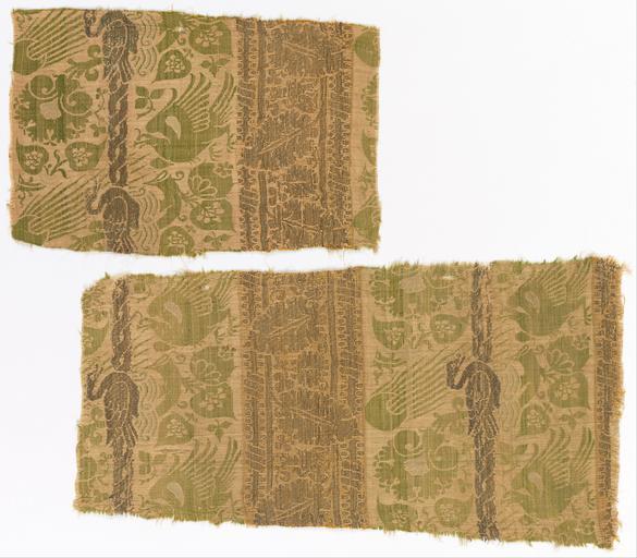 Keywords: Fragments - Google Art Project (5492252).jpg 6938587 Unknown /collection/cooper-hewitt-national-design-museum/artwork/fragments-unknown/5492252/ 11494 author /collection/cooper-hewitt-national-design-museum/ Cooper-Hewitt National Design Museum 3644669 http //www cooperhewitt org/ /collection/cooper-hewitt-national-design-museum/artwork/fragments-unknown/5492252/ 1300 14th century Medium silk metallic threadsTechnique 2/1 twill patterned with plain weave ex-collection Francisco Miquel y BadÃa 5492252 False 1399 1902-1-329-a b http //collection cooperhewitt org/view/objects/asitem/id/11494 Gift of John Pierpont Morgan Fragments 1300 1400 14th century False 1 14285714285714 Object fragments-unknown Fragments f Fischbach Friedrich Die Wichtigsten Webe-Ornamente Bis Zum 19 Jahrhundert Wiesbaden 1901 Figure 12 Hewitt Eleanor Garnier No 280 in her notebook of the Morgan Collection 13th or 14th century Sicilian Lessing Julius Die Gewebe-Sammlung Des K Kunstgewerbemuseums Berlin Berlin 1900 Tafel 108-A Warp x Weft a 42 8 x 23 cm 16 7/8 x 9 1/16 in Warp x Weft b 29 x 19 5 cm 11 7/16 x 7 11/16 in Medium silk metallic threadsTechnique 2/1 twill patterned with plain weave ex-collection Francisco Miquel y BadÃa special url_id vAFC1Ahm7ykKpw PD-old-100 Google Art Project works by unknown artist Textiles in the Cooper “Hewitt Smithsonian Design Museum Google Art Project works in Cooper-Hewitt Smithsonian Design Museum 14th-century textiles |