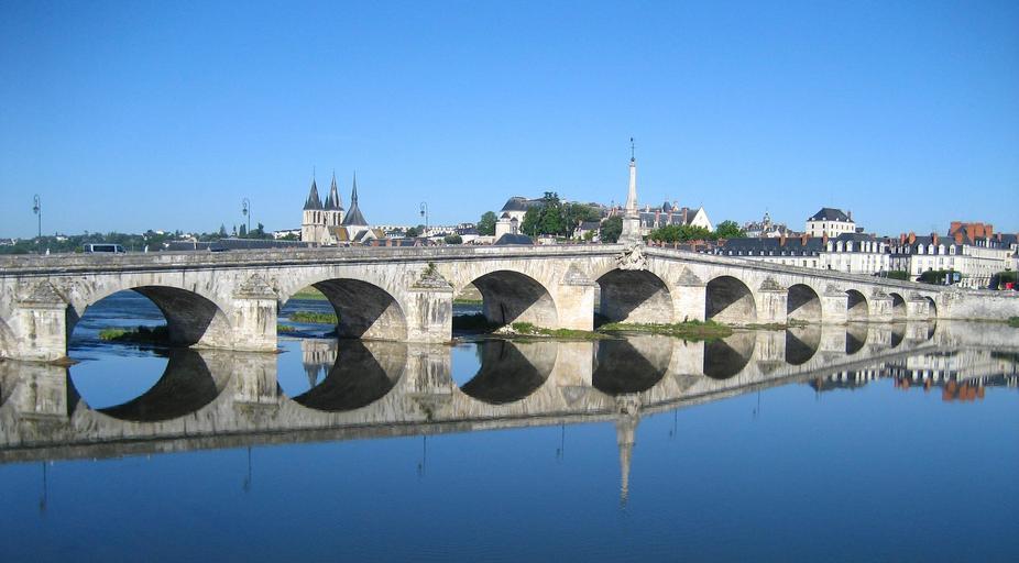 Keywords: france bridge town architecture summer spring outside reflections river water sky clouds