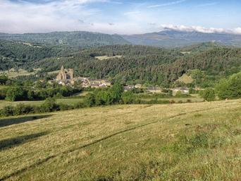 Keywords: france landscape scenic mountains sky clouds village church valley architecture field nature outside summer spring countryside