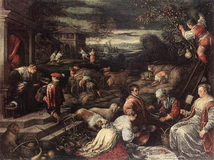 | Keywords: Francesco Bassano the Younger - Summer - WGA01421.jpg Artwork Creator Francesco Bassano the Younger secondhalf other date century 16 Oil on canvas size cm 97 127 Institution Hermitage Museum object history credit line accession number WGA link 1421 http //www wga hu/art/b/bassano/francesc/summe jpg http //www wga hu/html/b/bassano/francesc/summe html PD-old-100 painting landscape Italian 1551-1600 Francesco Bassano the Younger Italian Renaissance paintings in the Hermitage 16th-century oil on canvas paintings in Russia WGA form painting WGA type landscape WGA School Italian WGA time period 1551-1600 Paintings of summer 1551-1600 paintings 16th-century rural way of life Harvest in art Paintings of baskets People standing on stairs in art |