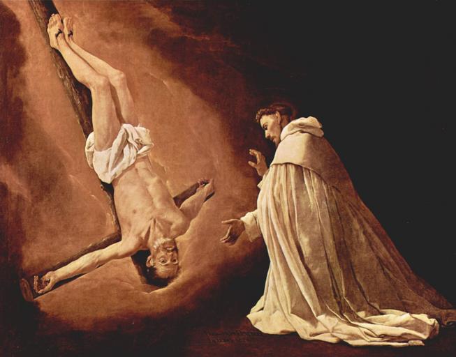 Keywords: Francisco de Zurbarán 027.jpg Artwork Creator Francisco de Zurbarán de Gemäldezyklus »Szenen aus dem Leben des Hl Pedro Nolasco« Szene Vision des Hl Pedro Nolasco vom Hl Petrus 1629 oil canvas 179 × 223 Institution Museo del Prado en http //www museodelprado es/en/the-collection/online-gallery/on-line-gallery/obra/the-apostle-saint-peter-appearing-to-saint-peter-nolasco/ es http //www museodelprado es/coleccion/galeria-on-line/galeria-on-line/obra/aparicion-del-apostol-san-pedro-a-san-pedro-nolasco/ de Madrid accession number object history credit line de Urspr im Mercenarier Kloster in Sevilla The Yorck Project 10 000 Meisterwerke der Malerei DVD-ROM 2002 ISBN 3936122202 Distributed by DIRECTMEDIA Publishing GmbH http //mail wikipedia org/pipermail/wikide-l/2005-April/012195 html 200px Baroque paintings of men 1629 paintings Upside down Oil paintings of men Paintings of the Crucifixion of Saint Peter PD-old-100 PD-Art-YorckProject Peter Nolasco by Zurbaran Paintings by Zurbarán in the Prado Museum |
